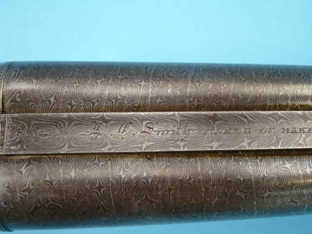 Damascus; rifle barrel is steel. Barrels marked: L.C. Smith, Maker of the Baker Gun,