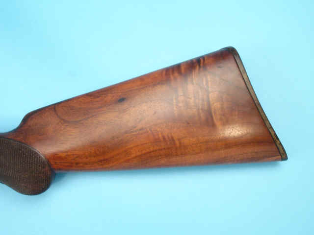 pistolgrip stock of figured walnut. Hard rubber buttplate. Finely checkered short fore-end