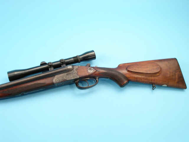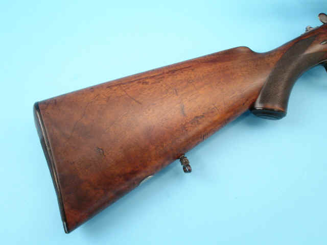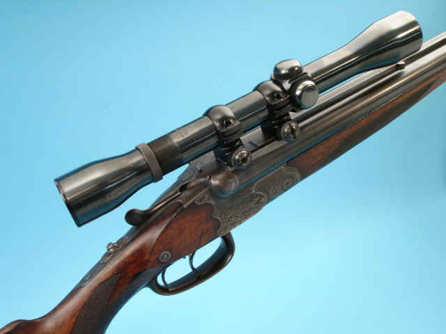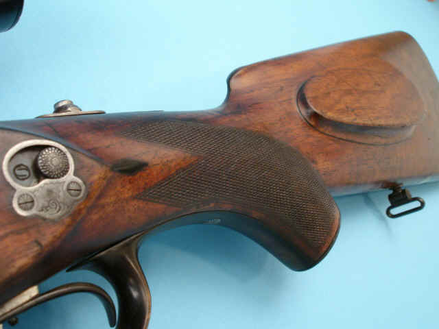 checkered splinter fore-end with Deeley-style release. Telescopic base mounted on right