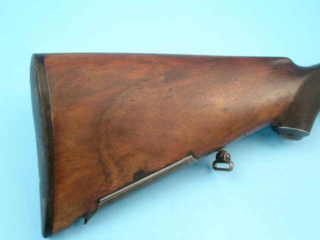 screw missing. Buttplate shows insect losses. Fore-end checkering shows heavy wear in