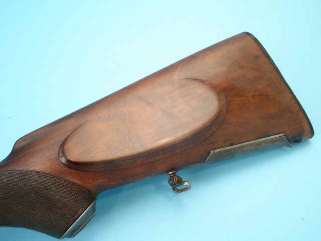 Finely checkered pistolgrip stock of slightly figured walnut. Horn buttplate. Steel