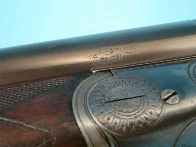 Serial no. 1452. 16 x 16 gauge by (possibly) 9.3x70R. 26 3/4-inch barrels with matted