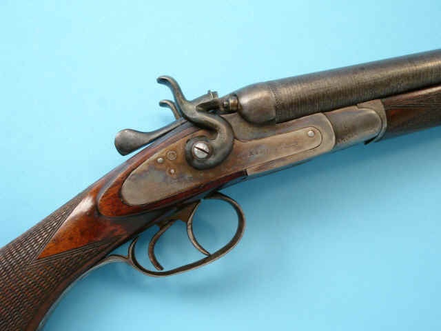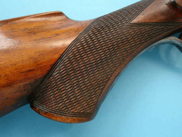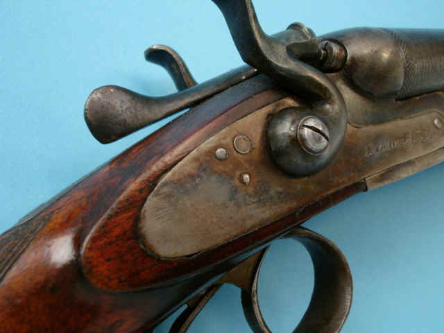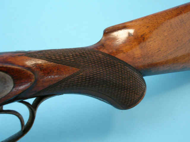 solid rib, bnrowned barrels, case-hardened locks. Varnished and checkered pistolgrip