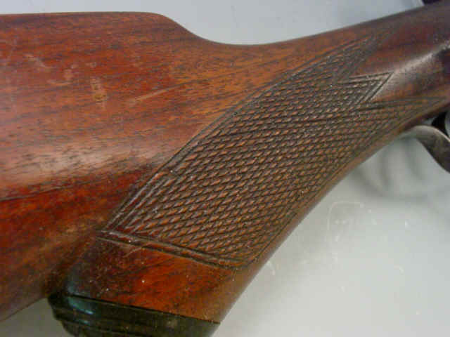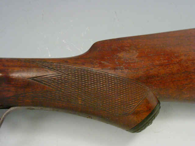 stocks worn with 50% varnish. Barrels shortened and with pitted bores; small dent at