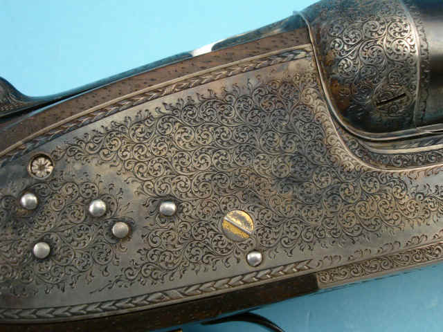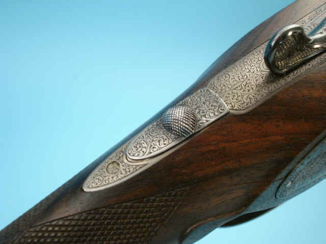engraved with chevron borders and very fine foliate scroll. Non-automatic safety. Single