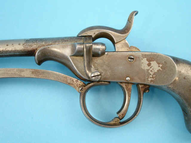 4-inch barrel with Liege proofs, iron frame with screw-mount at rear, trigger-accuating
