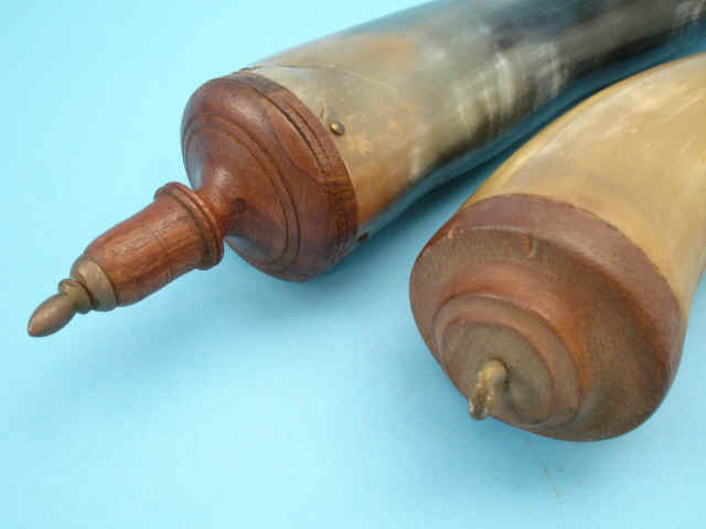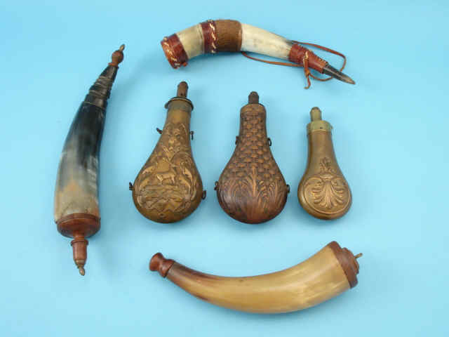 4) North African tourist grade decorative powder horn. 5) Indonesian tourist grade powder