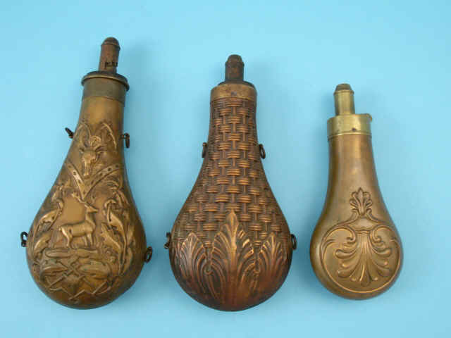 Shell and bush pattern flask [Riling #372]. 3) Basket weave pattern flask [Riling #428].