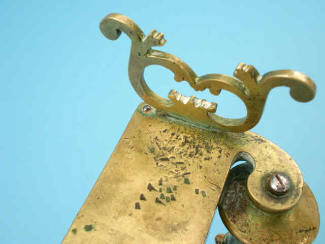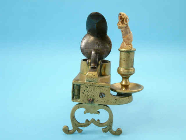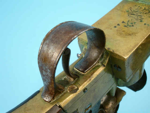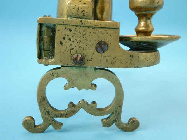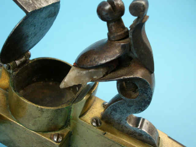 Of brass construction, the unadorned flintlock boxlock action with round tinderbox,