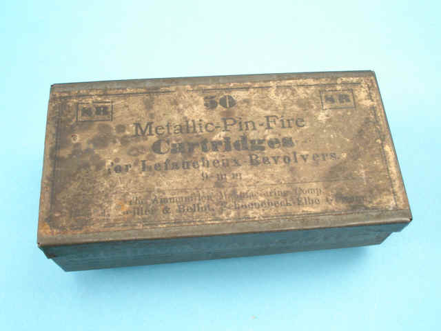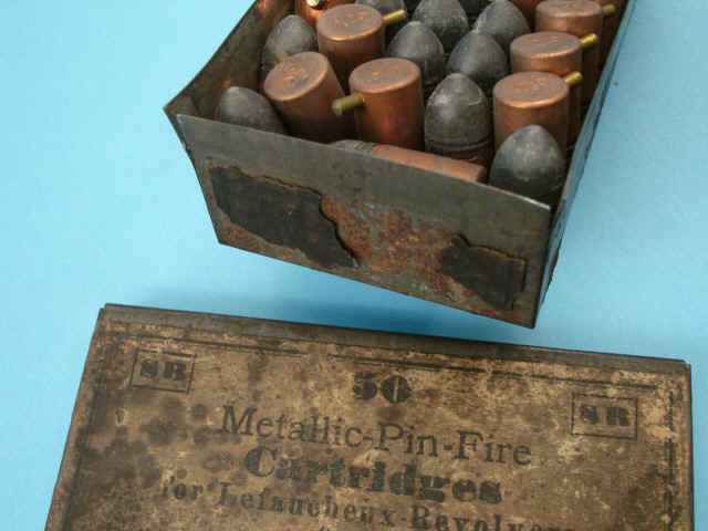 Scarce Tin Box of Metallic 9mm Pin-Fire Cartridges for the LeFaucheux Revolver