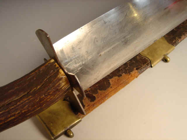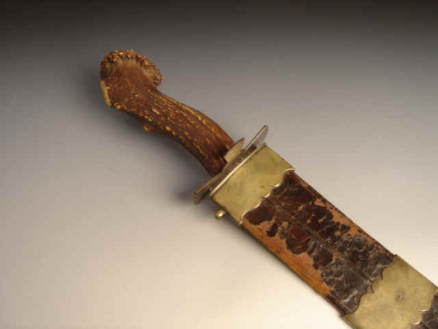 cross style crossguard with rounded edges. The single piece grip appears to be of elk