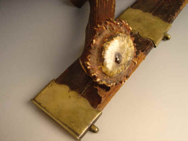 escalloped brass mounts; the high quality leather is neatly stitched together at the back