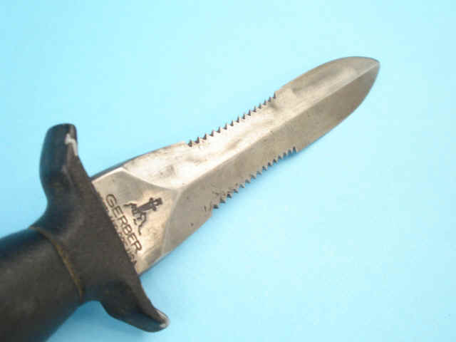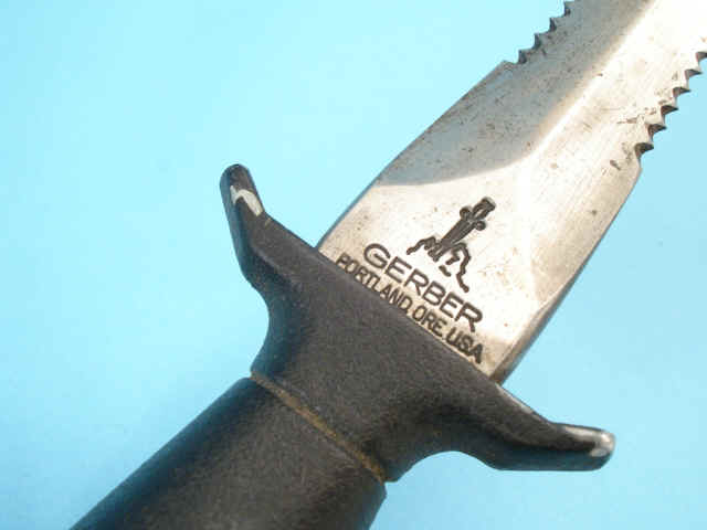 7 3/4-inch spearpoint blade with serrated mid-section. Ricasso marked: Gerber/Portland