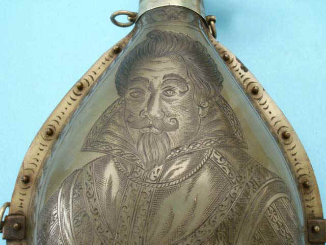 Engraved Commemorative 17th-Century Horn Powder Flask
