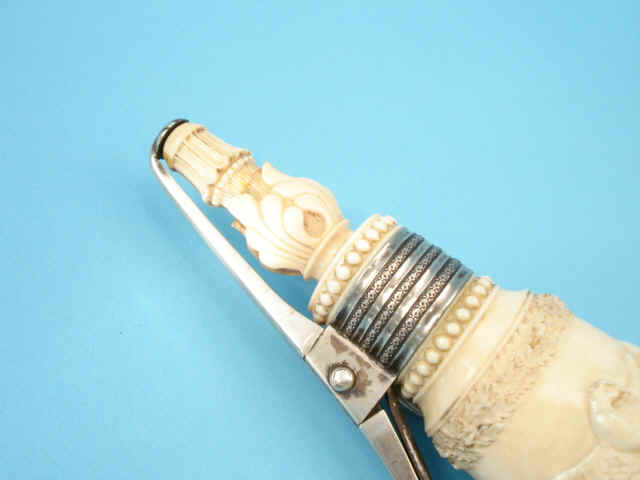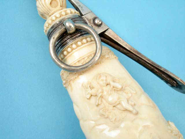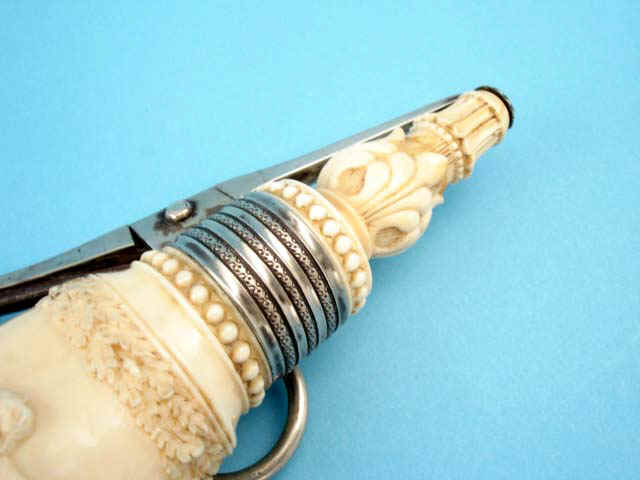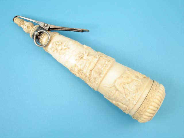 Superb French Silver-Mounted Carved Ivory Flask c.18th century