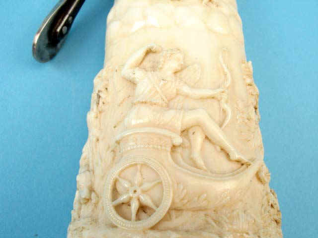 mount. An exceptional and museum quality carved ivory flask. Length: 11 1/2-inches.