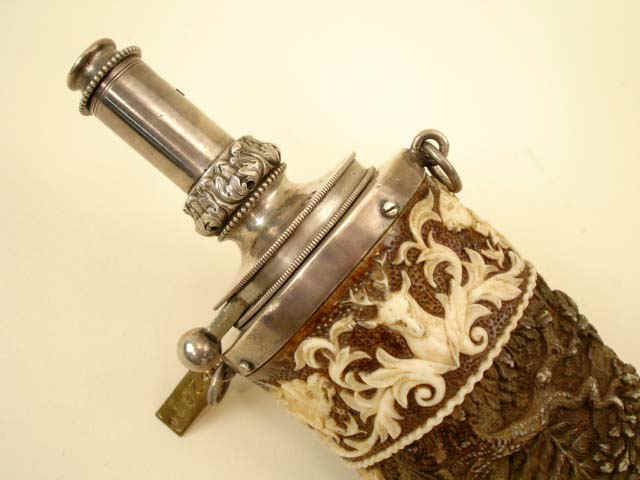 Exceptional Carved and Silver-Mounted Staghorn Flask