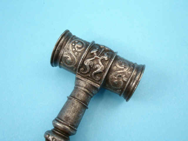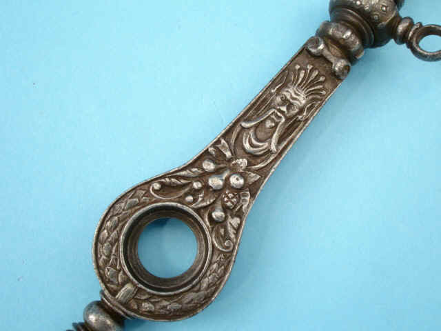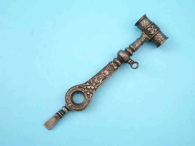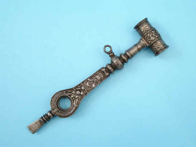 floral wreath, cornucopia and mythic figurals. One end with square key wrenches and the