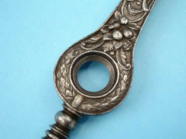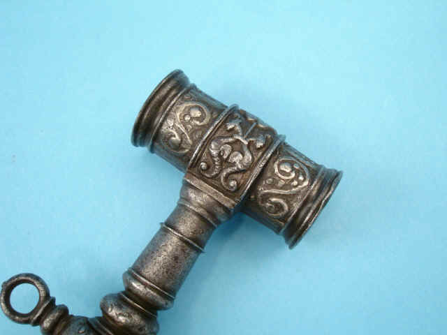 The "T"-shaped wheel lock key, deep-chisel engraved and silver inlaid with