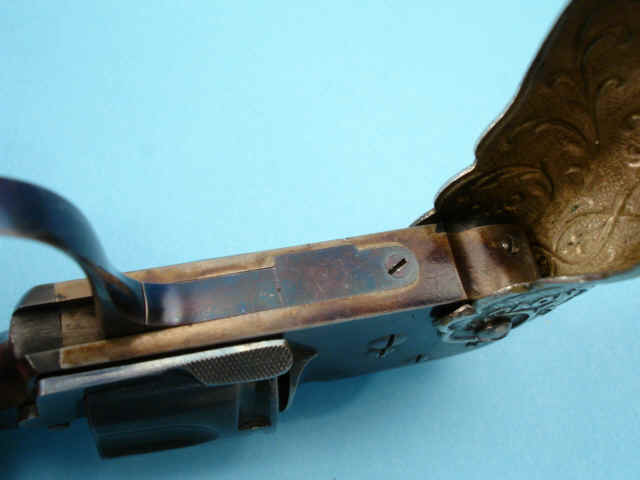 6.35 mm, 1 1/8-inch barrel. 5-shot cylinder. Blued finish. Case-hardened frame.