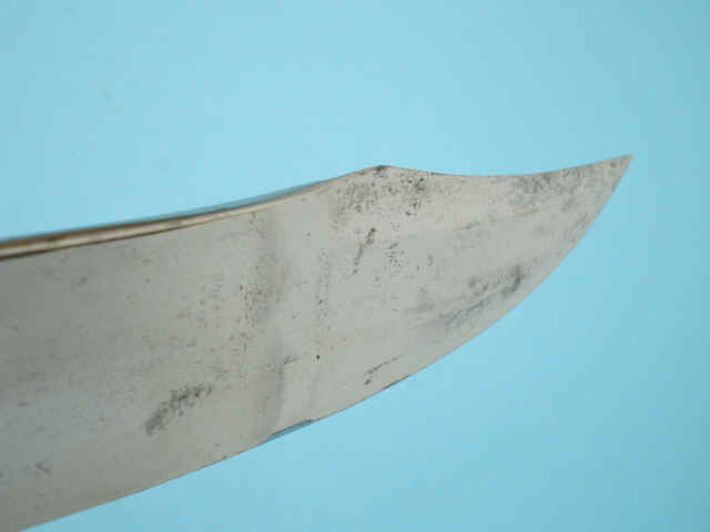 three facets at tip. Back of blade with rounded edges at ricasso and spool- type waist.