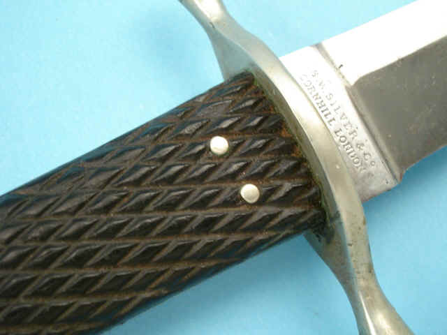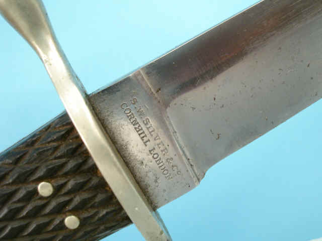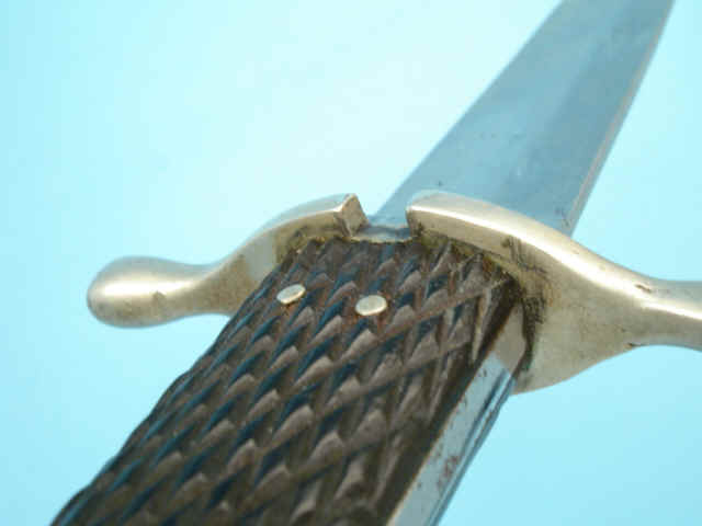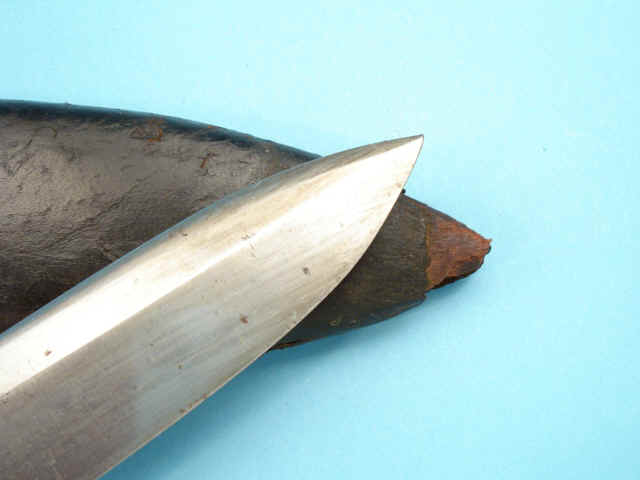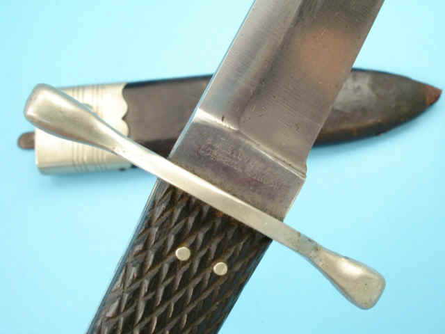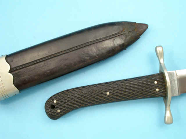 steel rivets. Contained in original black leather scabbard with german silver throat with