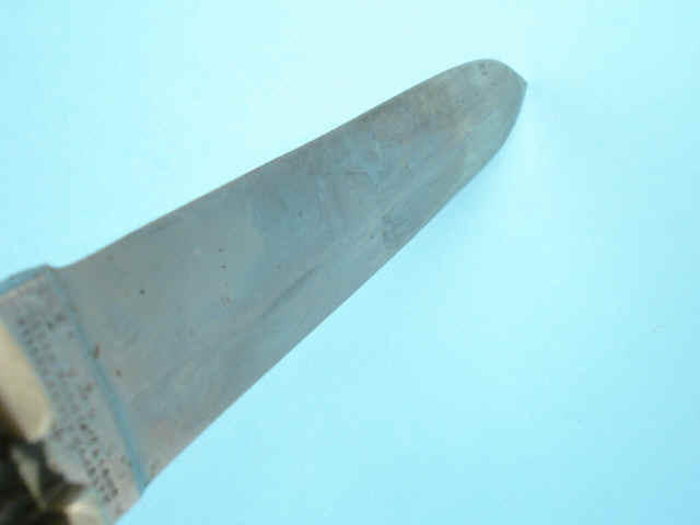 7-inch straight spear-point blade with 3 1/2-inch false back edge. Ricasso marked: