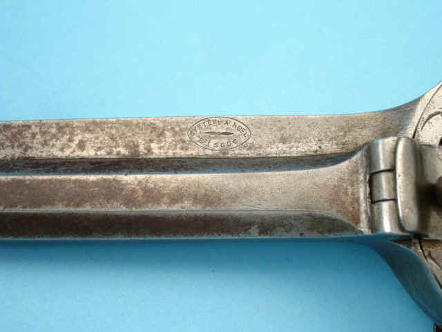 housing. Folding trigger. Grips with diagonal carved stripes. Steel pommel cap.