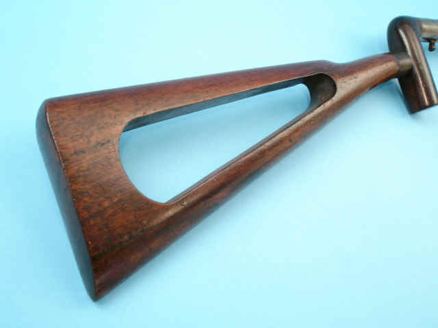 trigger and safety. One-piece varnished walnut grip. Twist-off locking walnut skeleton
