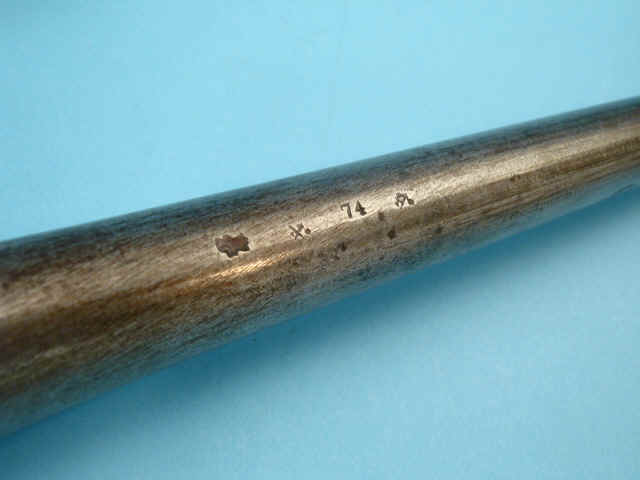 with British proofs. Stamped: 74. Twist-open spring-loaded action and breech. External