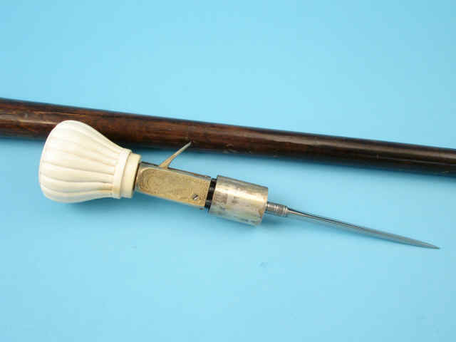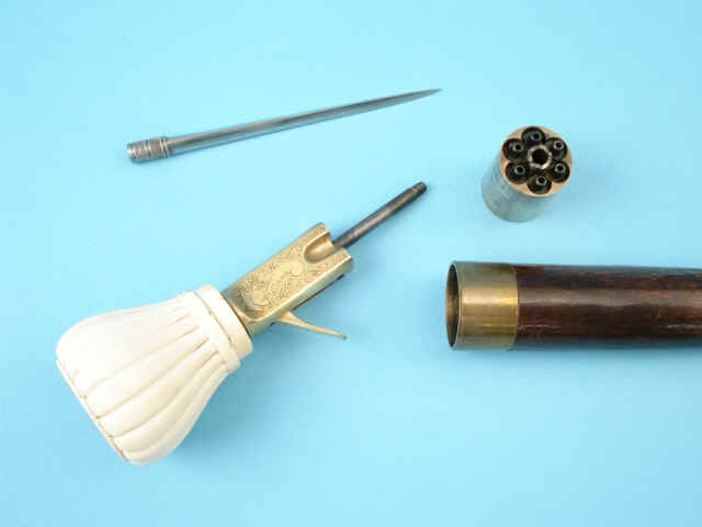Fine Scottish 6-Shot Ivory-Handle Percussion Pepperbox Revolver/Dagger/Cane by Wallace