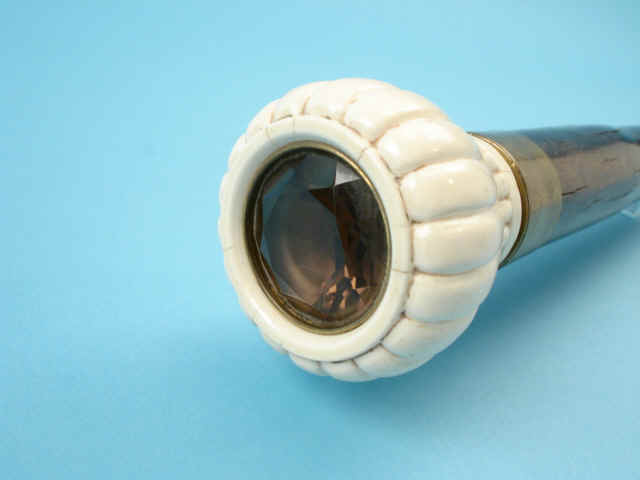 ivory knob grip with brass ferrule and large faceted citrine cairngorm stone mount.
