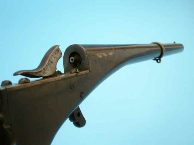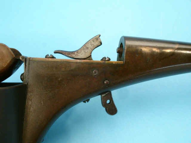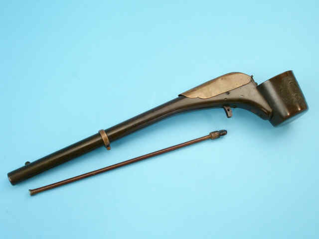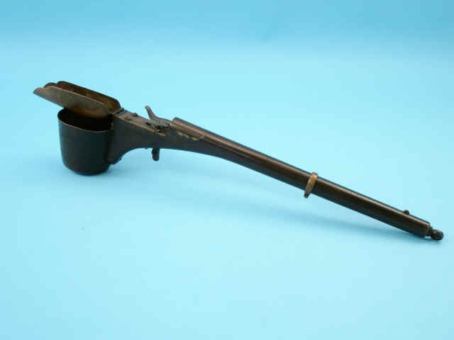 .36 caliber, 9 1/2-inch bronze barrel disguised as handle of ladle. Hinged sheet brass