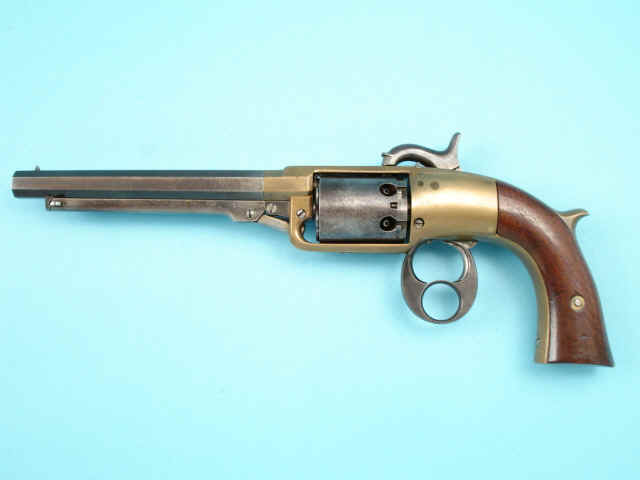 .36 caliber percussion, 6-shot, 7 1/8-inch octagonal barrel, rounded brass frame;