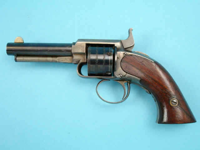 decoration and with 1857 patent marking; 3-inch round barrel; silver-plated steel frame
