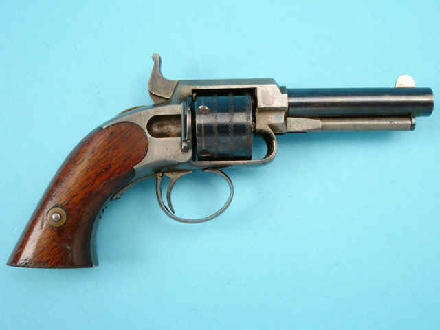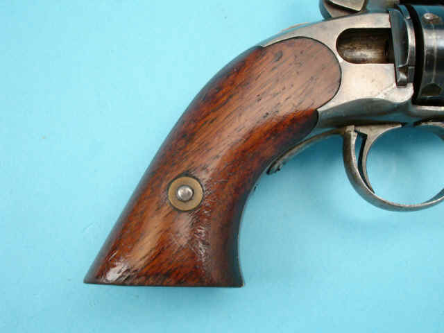 cylinder pin/ejector. Varnished walnut grips. Case with burgundy velvet lining and