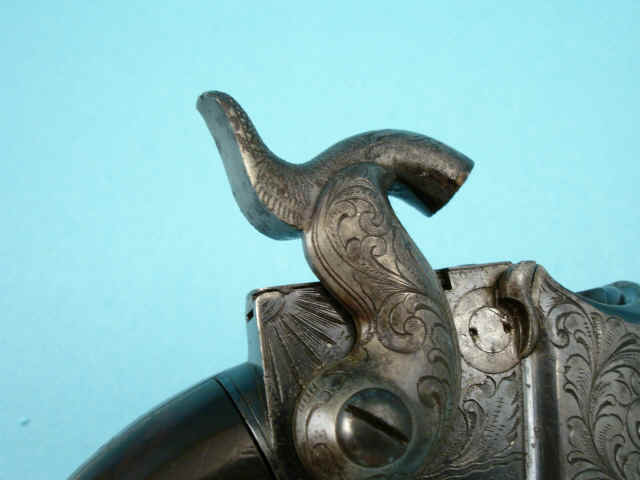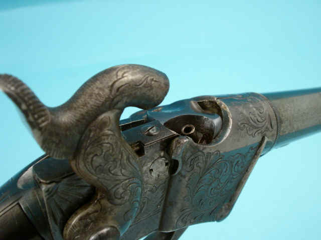 case-hardened lever and hammer; profusely scroll and border engraved on frame, hammer and