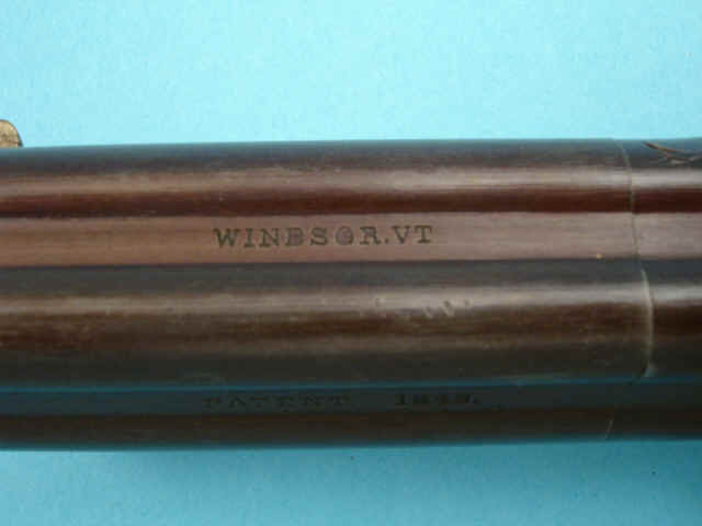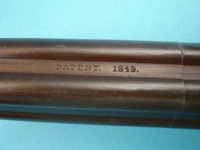 rib with maker, another with address, and next with PATENT 1849; scroll and border