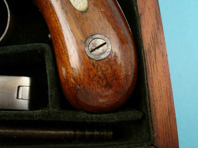 barrel cluster; varnished walnut grip with oval escutcheons. Varnished mahogany case lined