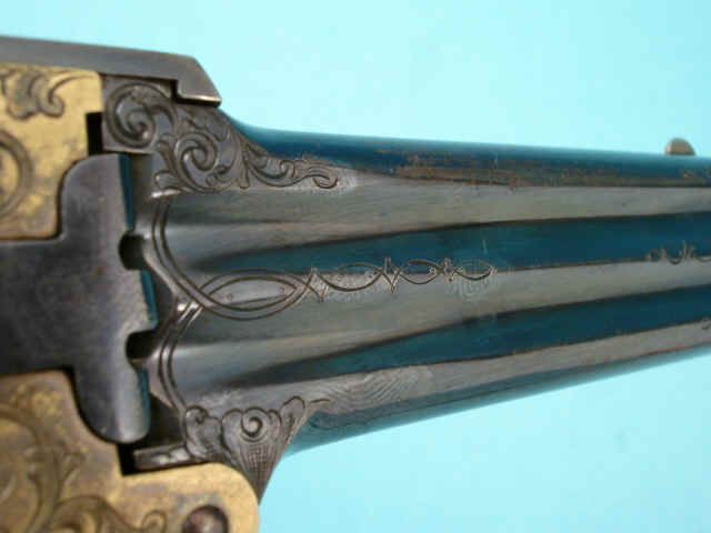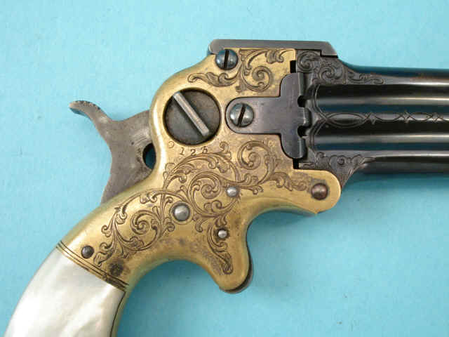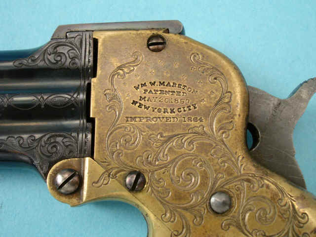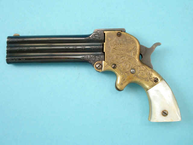 Excellent L.D. Nimschke-Engraved Marston Three-Barrel Derringer Pistol, with