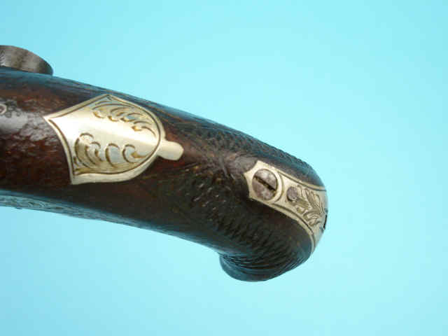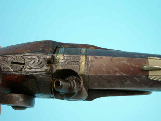 band inlays at barrel breech with P within sunburst motif; 1 3/4-inch barrel with faceted