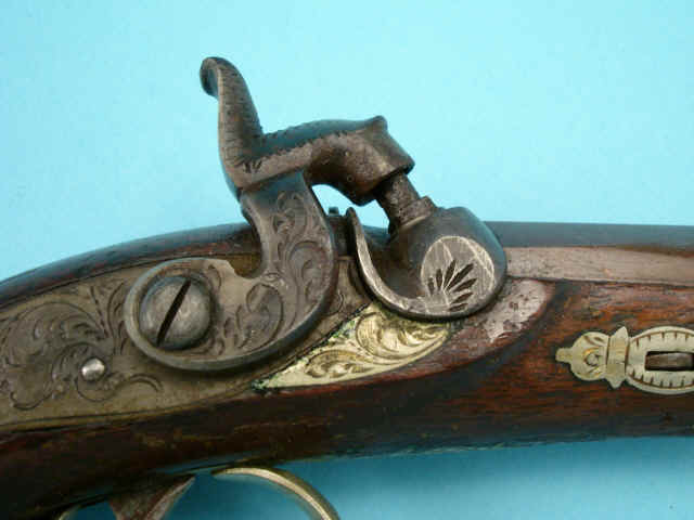 .45 caliber percussion, barrel breech and lock marked DERINGER/PHILADELA; German silver