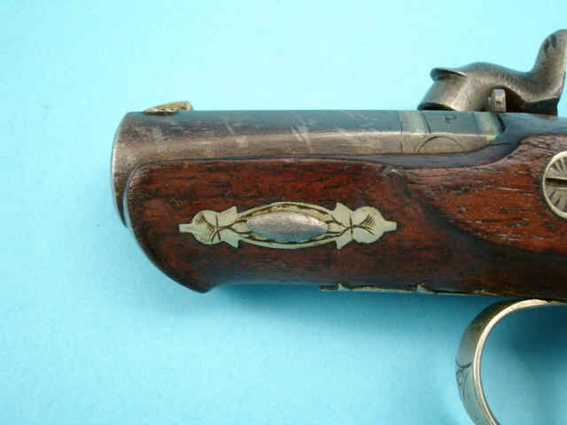 band inlays at barrel breech with P within sunburst motif; 2-inch barrel with faceted top,