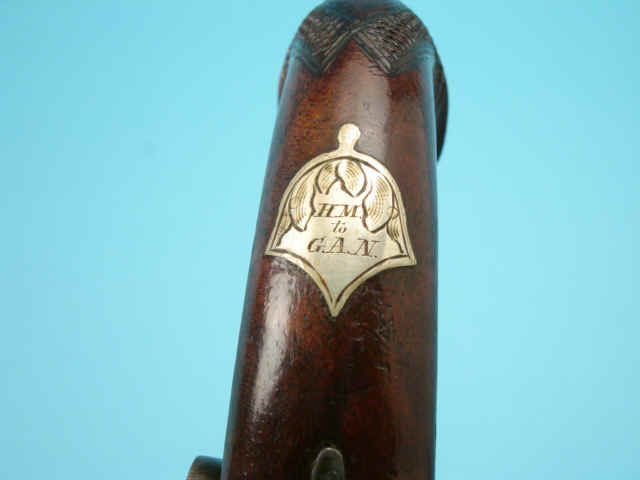 H.M./to/G.A.N.; capbox in butt. Engraved lock and mounts and barrel tang. Overall length 4