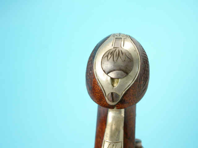 simulated damascus finish; German silver mounts; thumbpiece escutcheon inscribed: