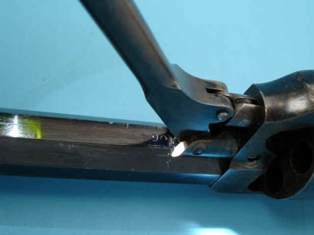 brass triggerguard; case-hardened hammer and loading lever; varnished walnut grips.