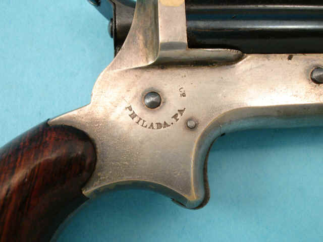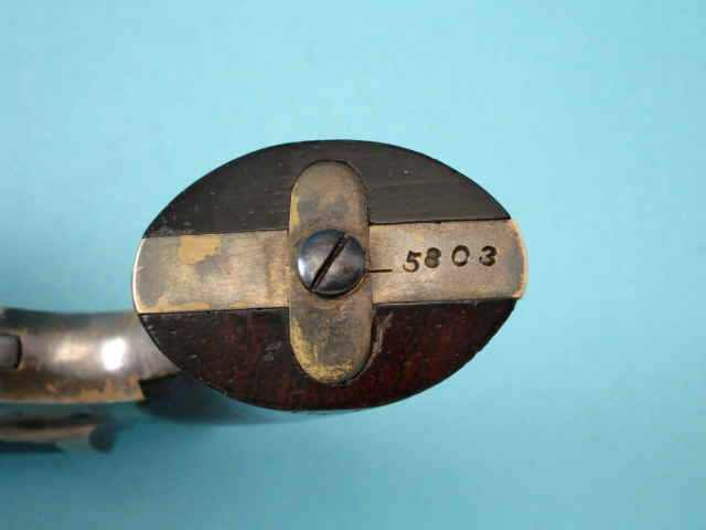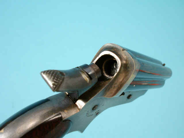 finish, with silver-plated brass frame; case-hardened hammer; varnished rosewood grips.