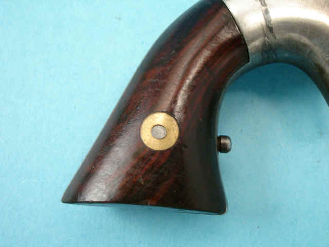 silver-plated iron frame; varnished rosewood grips. Without loading port on frame.