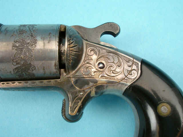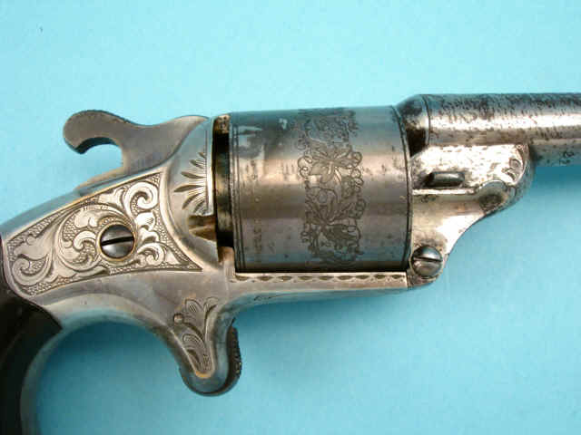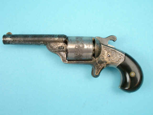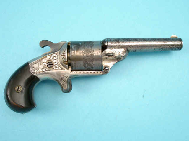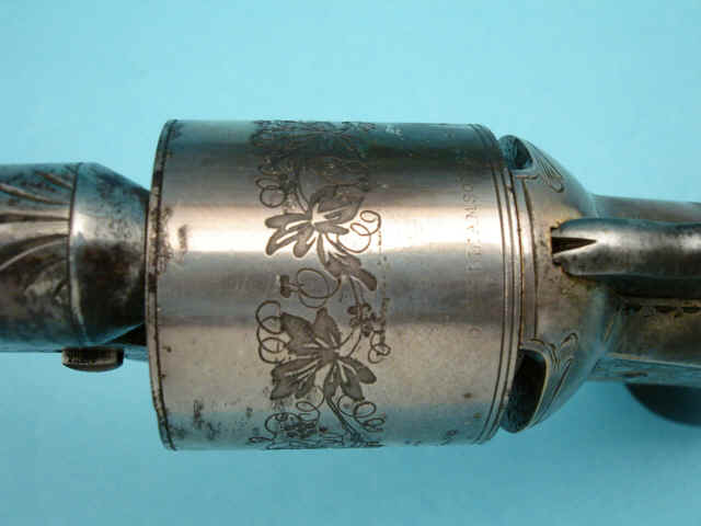 Serial no. 22309, .38 caliber, 6-shot, 3 1/4-inch barrel, silver-plated with etched