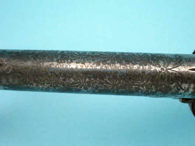 barrel and cylinder and engraved frame; case-hardened hammer; varnished rosewood grips.
